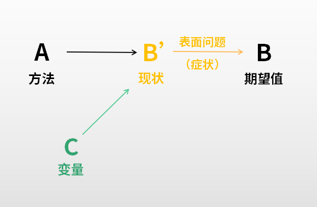 而问题并不会平白无故出现,它是由目标、方法、变量这三个因素共同影响产生: