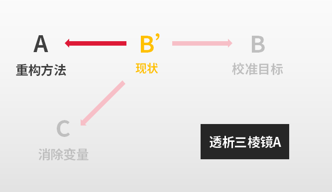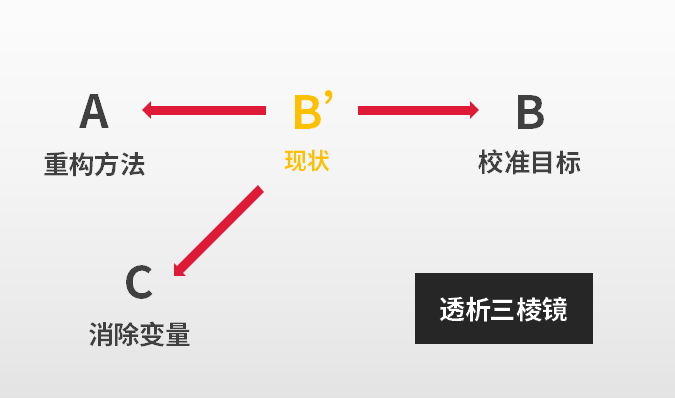 当出现了现状(B’),我们会习惯性的再找一条从(B’)到(B)的途径,其实这是治标不治本的方法,结果常常让同样的问题重复出现,这个前面我们已经说过。