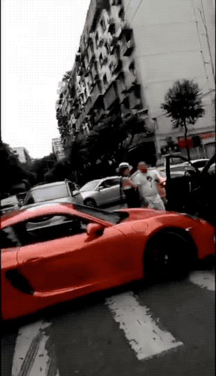帽子姐开的是保时捷,在斑马线违规掉头时,与开着奇瑞的网约车主发生争执。