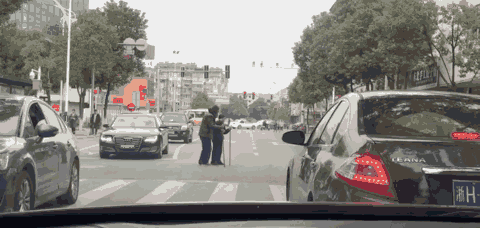 一个没有红绿灯的路口,两边的来车,却都不约而同的停下。