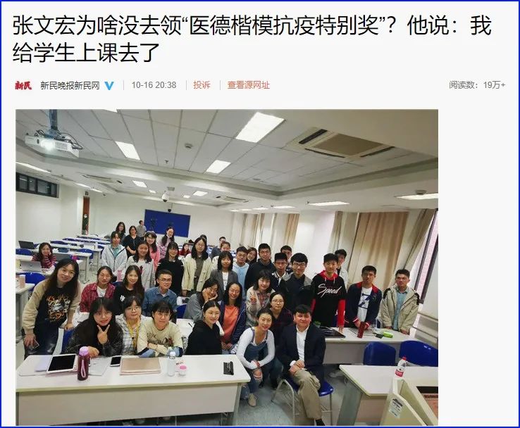 2020年10月16日,上海举办了首届“医德之光”“医德楷模”“医德楷模抗疫特别奖”颁奖活动。这个奖分量很重,张文宏也得了奖。颁奖典礼全市关注,要是换做其他人,早就乐不可支了,但张文宏竟然缺席了。