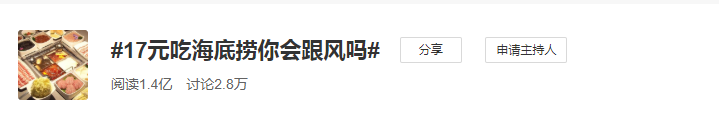 近日,话题#17元吃海底捞你会跟风吗#登上热搜榜。