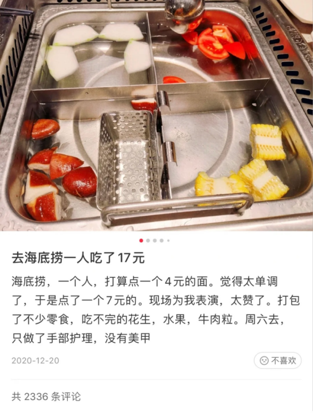 花一杯奶茶钱吃了顿海底捞,连吃带拿,别人是“吃不完兜着走”,这位网友可好,“吃完了,也能兜着其他东西走”。