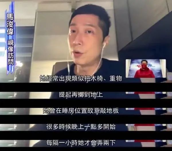 住在楼下的马浚伟常常听到,邻居搬起椅子,或是重物然后重重摔倒地上的声音。