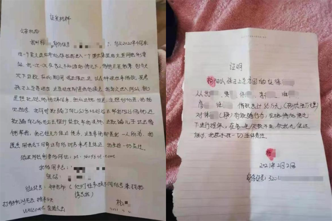 杨某的老公告诉@北京青年报 的记者,在知道妻子因为网络赌博欠下巨款后,曾劝她去自首,但杨某不愿意。