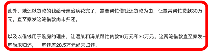 后来又欺骗同事,以贷款给母亲治病还钱为理由,向银行申请高额贷款,一笔30万,一笔16万。