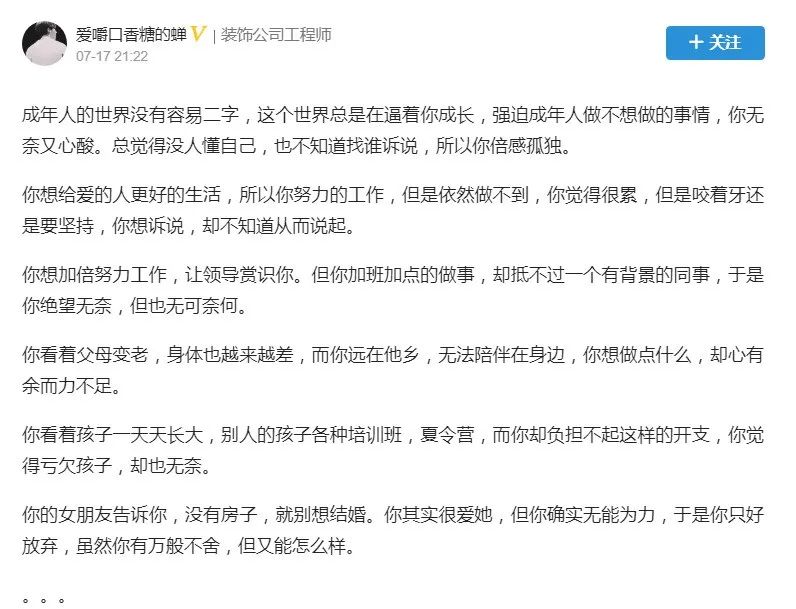 @爱嚼口香糖的蝉 说了一段话,击溃无数人的心理防线: