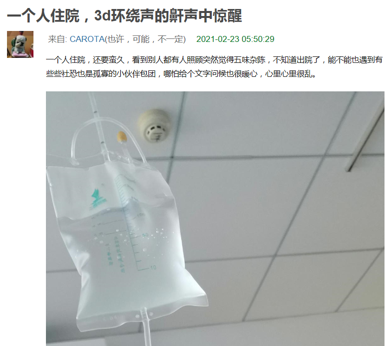 网友@ CAROTA 生了一场大病,要在医院待一段时间。
