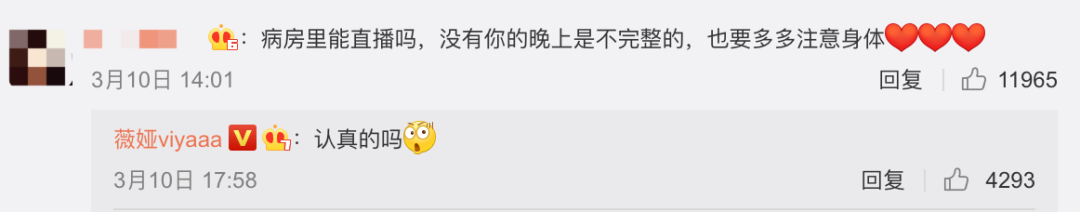 “病房里能直播吗?没有你的晚上是不完整的。”