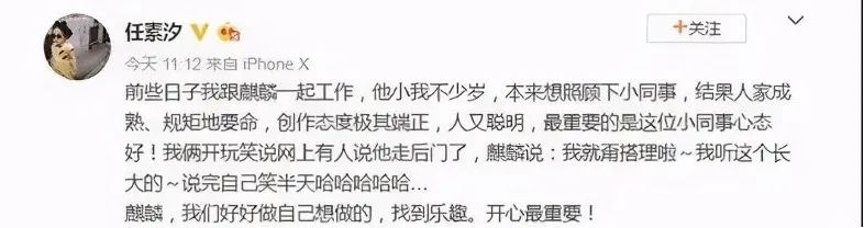 任素汐也曾发微博表达对郭麒麟的欣赏: