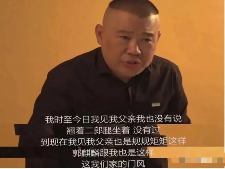 郭德纲说,这是郭家的门风,他在自己父亲面前,也一直是这么做的。