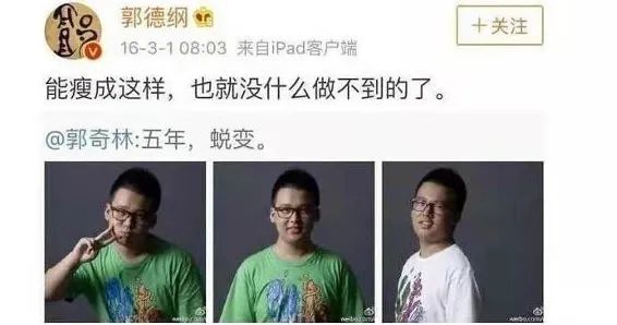 当郭麒麟减肥成功后,郭德纲发微博夸儿子:能瘦成这样,也就没什么做不到的了。