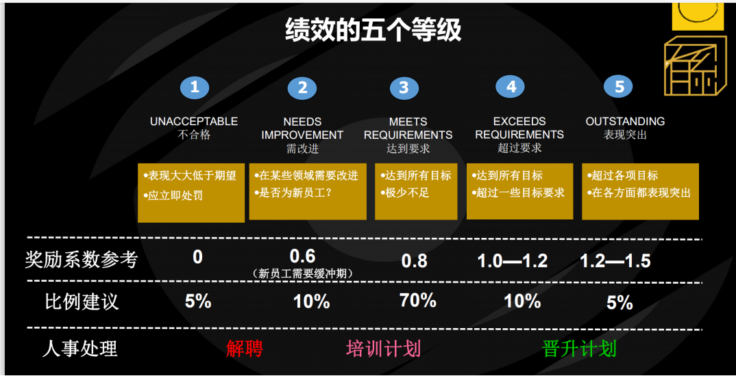 当然如果你今年绩效特别好,第四第五级的员工就应该多一些,