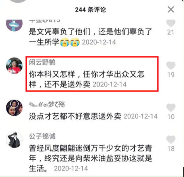 这则评论激起巨大争议,不少网友批驳其世俗功利。