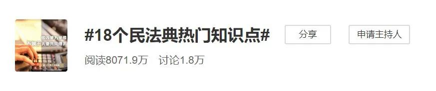 2021年1月1日,《民法典》正式施行。这是新中国成立以来第一部以“法典”命名的法律,堪称“社会生活百科全书”。其中的话题#18个民法典热门知识点#也一度登上了微博热搜榜。