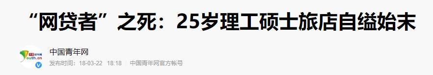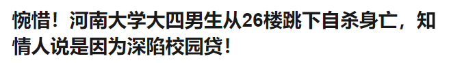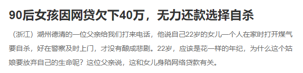 年轻人因为深陷网贷校园贷无法偿还而自杀的新闻,我们每年都会看到好几起。