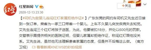 本来只要让婴儿家属作证,说明一下当时的情况就可以免除处罚,可家属却断然拒绝,称“闯红灯跟他没关系”。