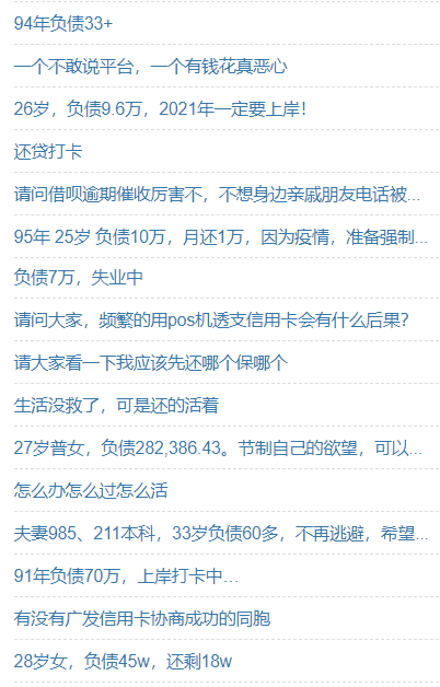 豆瓣上那个负债者联盟,我打开看了一下,光是标题就发人深省啊!
