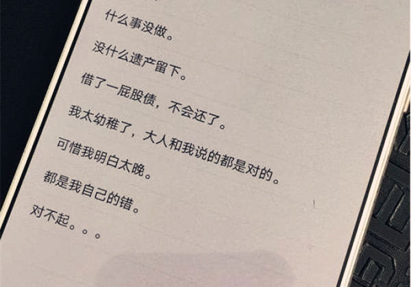 “借了一屁股债,不会还了。我太幼稚了,大人和我说的都是对的。可惜我明白太晚……”