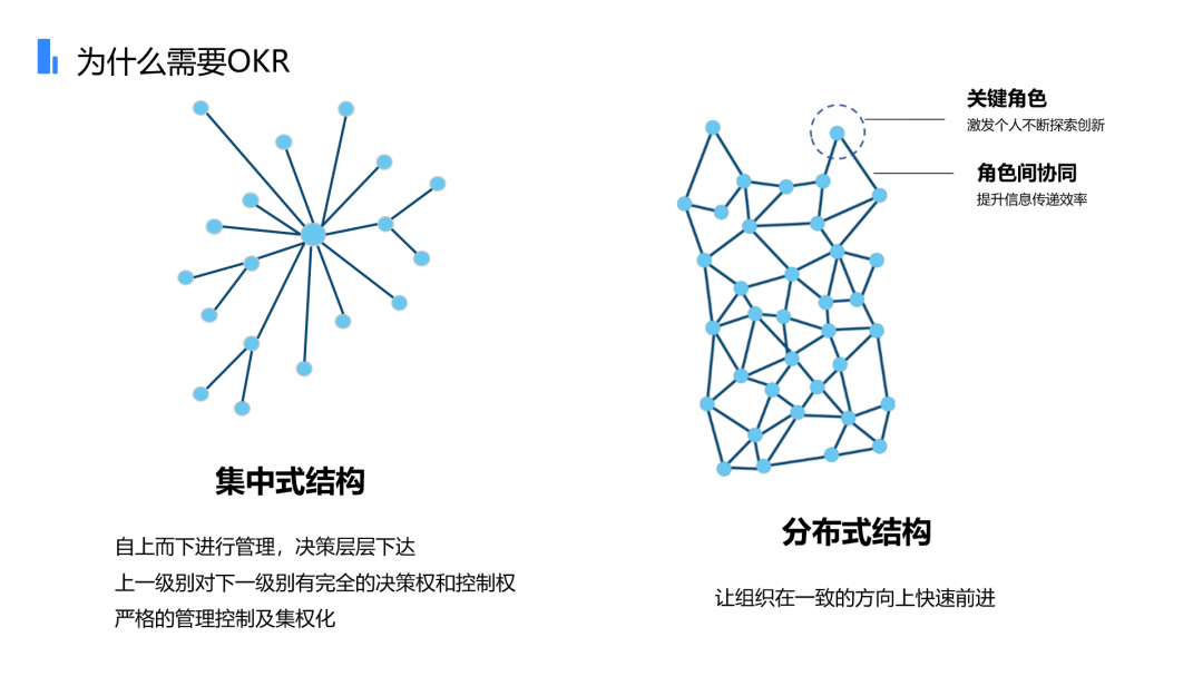 而OKR强调去组织架构下的共创和聚合,同时随市场反馈高频调整;