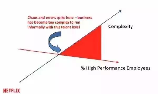 图中红字:混乱和错误钉牢这里,在这个人才水平上,业务已经变得太过复杂而不可能以非范式的形态运行。
