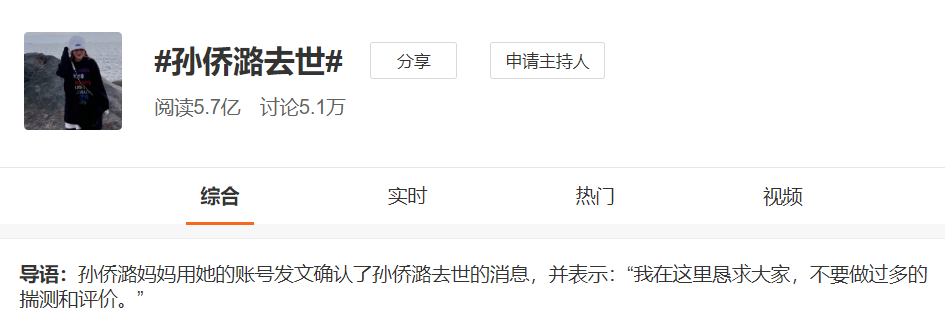 我们看到孙侨潞猝然离世后,她妈妈那篇长长的文章,字里行间都是白发人送黑发人的心酸和凄切。