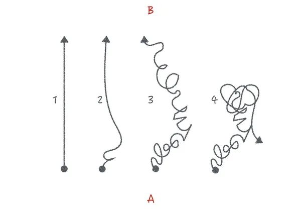 读书越多,你走的弯路就越少,反之就会像4这条线一样,永远都走不到终点。