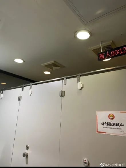 快手官方对此作出回应说:“园区厕所位置有限,员工上厕所排队现象严重,安装计时器,是为了测试卫生间每天使用次数和时间,便于判断需要增加的坑位数。”