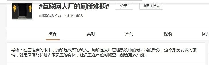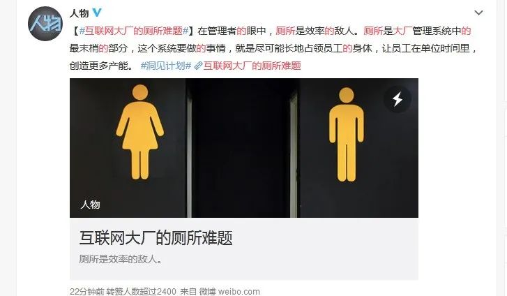 前几日,#互联网大厂的厕所难题#突然登上热搜,其中提到: