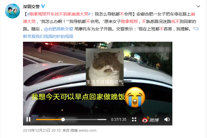 先前的一则新闻,一个女生在路边违停,交警上去批评教育,结果刚上去,女生就崩溃大哭,一边大哭,一边称找不到回家的路。听到女生说的这些话,辅警连声安慰,开路将女子顺利送回家。