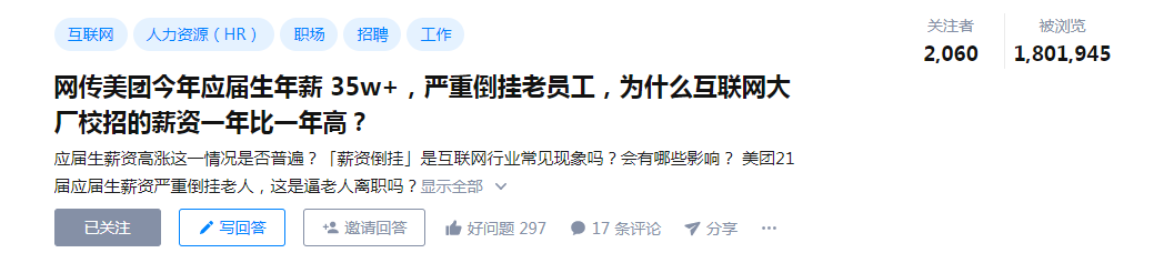 “网传美团今年应届生年薪35w+,严重倒挂老员工,这是逼老人离职吗?”