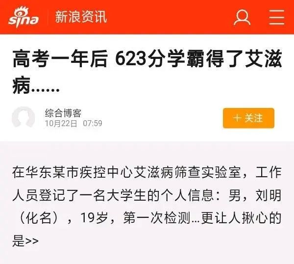这让我想起前段时间,华东某985高校一年级新生,经确诊染上了艾滋病。