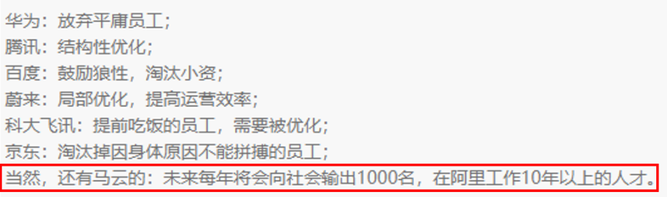 年初,马云的那句“每年向社会输出1000名10年以上的阿里人”,被网友调侃为最具艺术的裁员说法。