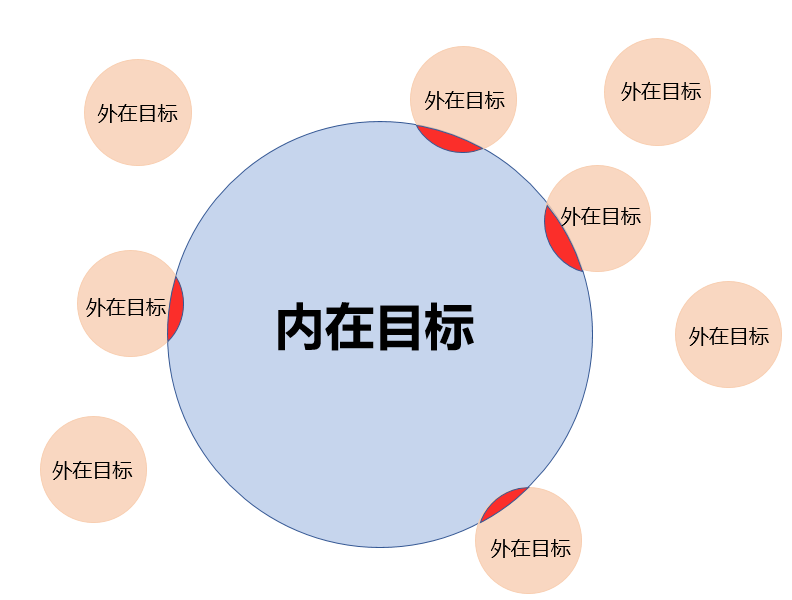 内在目标和外在目标产生交集的部分,能够成为刺激点,成为我们前进的驱动力。