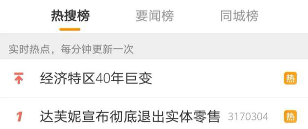 8月26日,新闻#达芙妮宣布彻底退出实体零售#上了微博热搜榜第一。