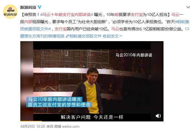 前段时间,马云的一则10年前谈支付宝的梦想和使命的内部讲话视频上了热搜。里面有段话,颇有感触。