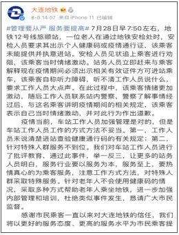 最后,事情的结尾是警察到场调解,并且大连地铁发了通报,说对相关工作人员批评教育,改善工作方式。