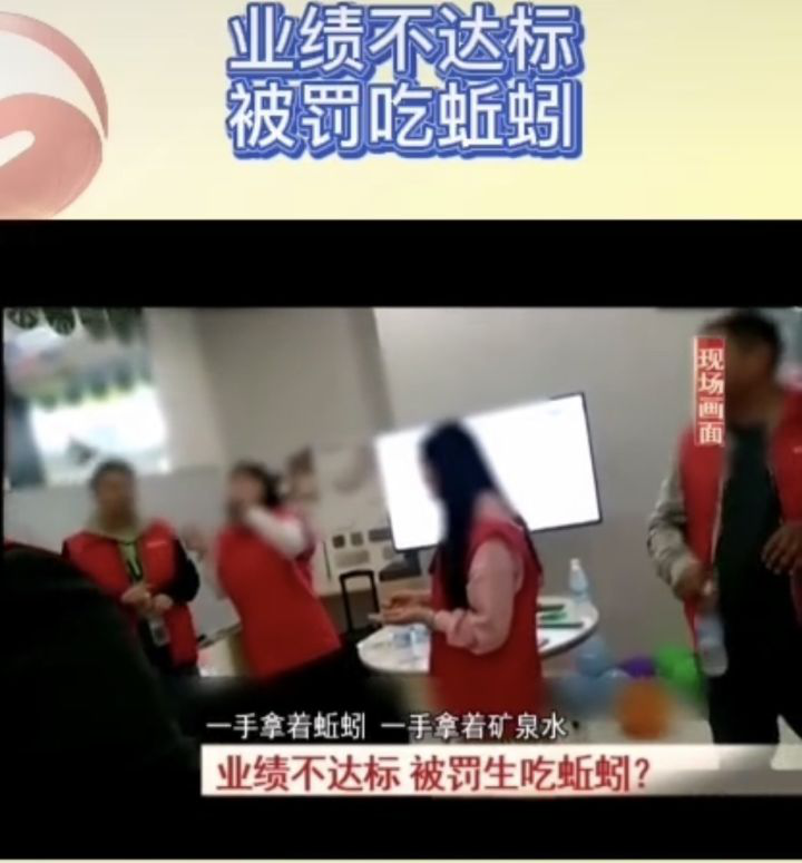 无独有偶,贵州毕节一家装饰公司,因业绩不达标,员工被罚吃活蚯蚓。