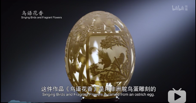 袁家钊曾用非洲鸵鸟蛋,制作过一枚叫做《鸟语花香》的蛋雕,这件玲珑剔透的作品,雕刻时间虽然不长,但仅构思环节,就花费了两个月。