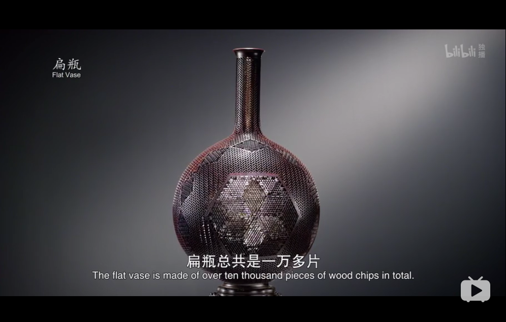 他的一件代表作“扁瓶”,高不足一米,厚36厘米,宽48厘米。整个瓶身用厚度为1-2毫米、宽度为0.8毫米到1厘米的榫卯材料制成,全瓶用料1万多片,耗时2年。