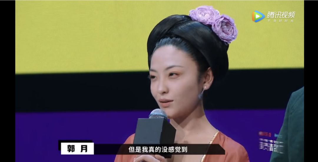 演员郭月和张哲瀚,在饰演《大明宫词》选段时,郭月的黑色美瞳,从眼中掉出,一直粘在脸上。