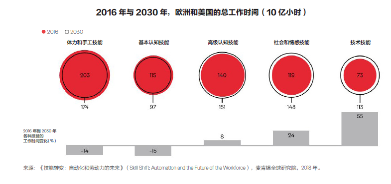 看标题呢?你可能会更有气无力:人口增长已经放缓,年龄合适的人力资源,不够了。人口结构变动之外,根据奥美报告的2组数据,随着经济发展,对劳动力的需求,也变了:1,到2030年,从事涉及体力劳动和手工技能任务的总工作时间,将减少14%,而使用技术技能的工作时间,将增加55%。2, 根据光辉国际的数据,这将导致全球劳动力短缺,到2030年空缺职位将达8500万个。