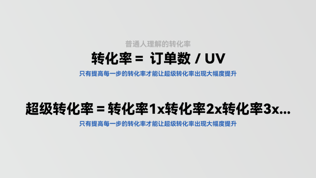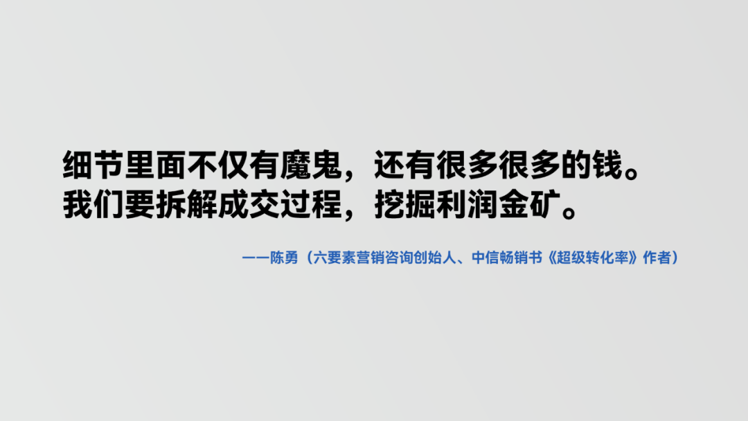 道理都懂,但是为什么现实中很多企业,却依然在做无用功呢?你在上海经营一家婚纱摄影店,为了获得更多客户,你决定在本地晚报上投放广告。广告投放后,确实带来了一些效果,但是钱也花得肉痛。拍婚纱照的多是30岁左右的客户,只占报纸读者的不到10%。就是把钱有节奏地花在刀刃上,让且只让真正的潜在客户看到广告,获得最大ROI。ROI=营收/投入=客单价×销量/渠道计费单价×计费数量=客单价×转化率/渠道计费单价。一般人理解的转化率是:转化率=订单量/UV,就像看见一棵树。专业人士眼中,转化率是一个复杂的系统工程,就像看见一片森林。很多朋友咨询我营销方面的问题时,我问他订单量多少或者销售额多少,他是知道的,但是一细问,比如问访问落地页UV多少(针对网站型获客的企业)?举个例子,我之前服务中国最大的素质教育公司的少儿围棋业务,他们早期通过线下老师陌拜和家长转介绍的方式来招生。但是超级转化率=兴趣率×预约率×到场率×到场成交率。当时这家公司少儿围棋业务的数据是:5%(兴趣率)×33%(预约率)×33%(到场率)×50%(成交率)=0.27%。我在2014年操盘之后,ROI高达1:102,做到的数据是:33%(兴趣率)×74%(预约率)×80%(到场率)×50%(成交率)=9.76%。通过调整营销方式,以及优化广告投放账户和落地页,将兴趣率从5%提升到33%;然后通过优化销售话术,筛选出真正的目标用户,将预约率从33%提升到74%;再通过到场SOP,电话沟通,给家长传递让孩子学习围棋的价值和重要性。没关系,逐个分析,逐个优化。一点点拆解,抓住细节。模拟用户每一步的操作,找到影响每一步的关键因素并优化。只有提高每一步的转化率才能让最终的超级转化率有大幅度提升。有了高转化,大规模购买精准流量,付费投广告,就是战略级选择。
