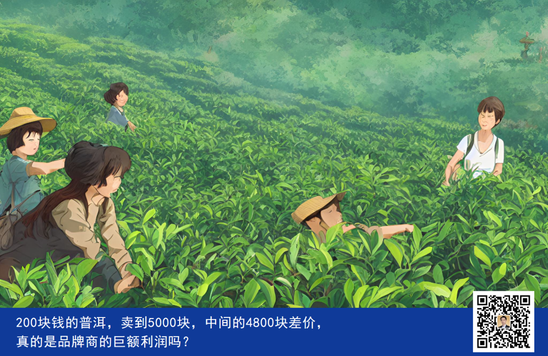 但是,你见过哪个茶商发大财的?中国十大首富里,有卖茶叶的吗?200块钱的普洱,卖到5000块,中间的4800块差价,真的是品牌商的巨额利润吗?