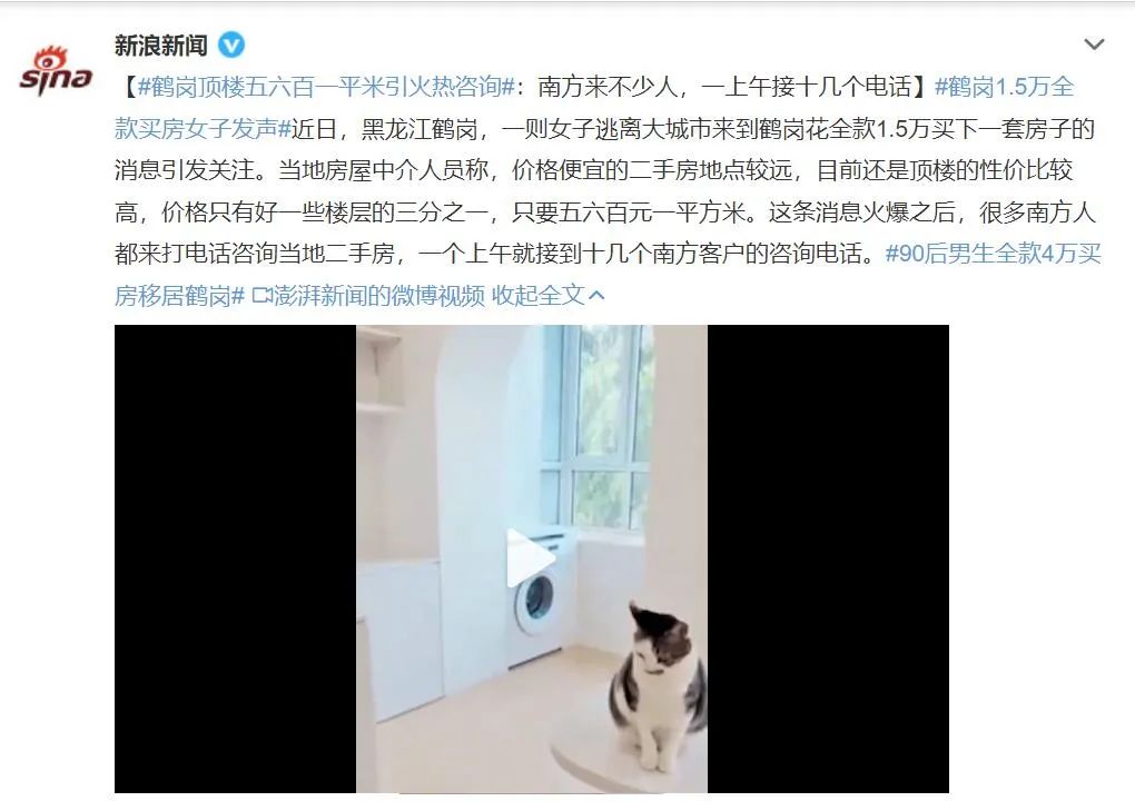 无独有偶,一位原在杭州月入过万的90后小伙也和女友选择在鹤岗定居,花费4万元买了一套70平米的房子。