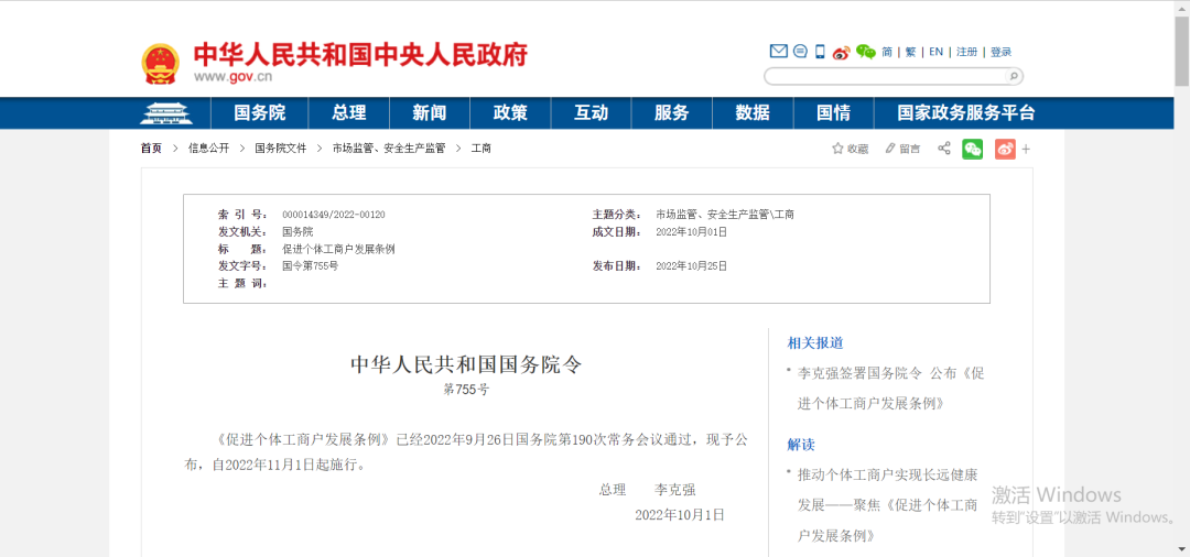 国务院日前发布的《个体工商户条例》,自2022年11月1日起正式实施。