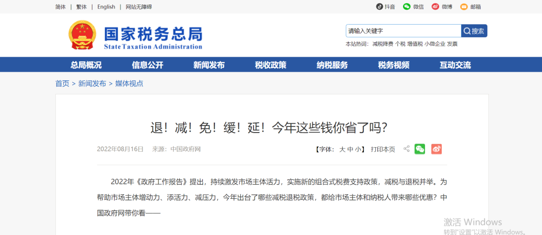 2022年上半年,小规模纳税人“六税两费”减征政策进一步扩展至小型微利企业和个体工商户,新增减税降费830亿元。