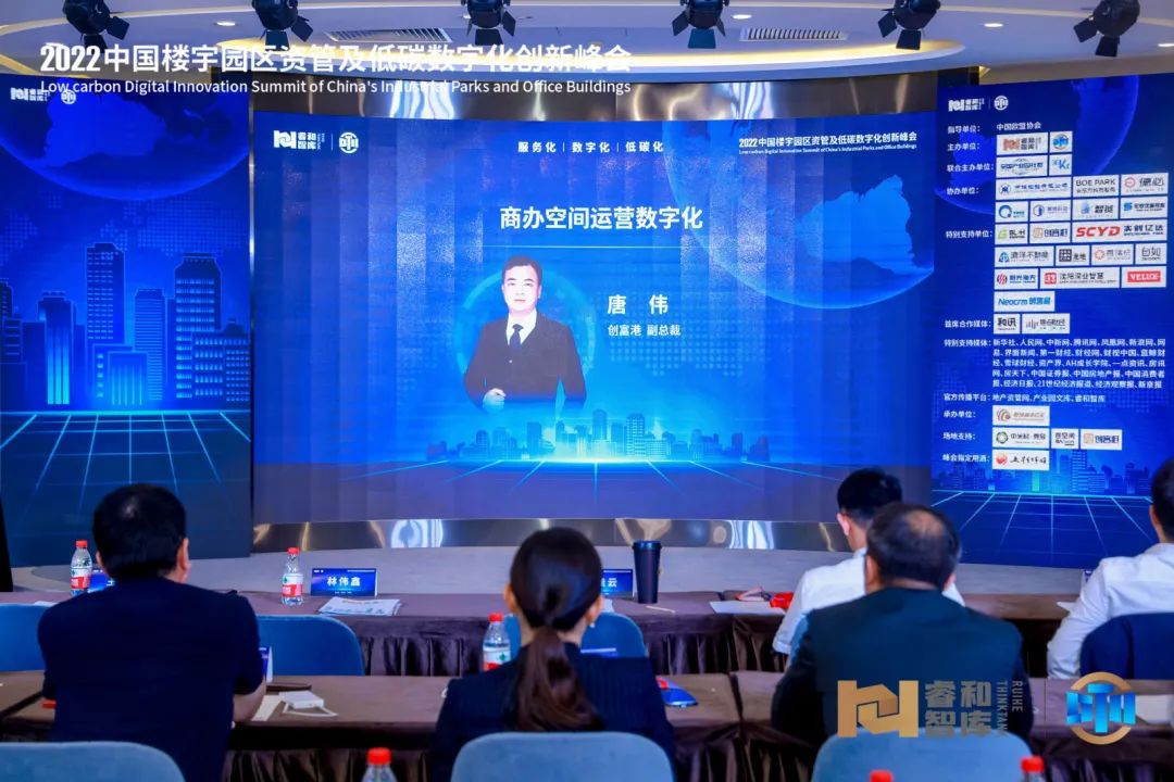 本次峰会以“服务化、数字化、低碳化”为主题,汇聚行业产学研相关机构及大咖,围绕园区的物业管理、运营管理、资产管理、低碳实践及数字化转型等重大课题,进行广泛而深入的讨论,推动行业健康长效发展。峰会上,创富港凭借在商办领域优质的运营服务能力和行业领先的综合发展实力,荣获“卓越商办服务典范企业”。创富港自成立以来一直以“协助创富者成功”为使命,在此基础之上创富港进一步提出“科技赋能创业服务”的发展宗旨,用科技的力量改变创业中几乎所有的环节。使用物联网构建智能实体创业空间、使用互联网构建虚拟社群创业空间,通过人工智能大数据赋能创富港及创富港会员,以“品质空间、专业服务、互助社群”为核心致力打造成为一站式创业创新服务平台领导者。峰会上,创富港副总裁唐伟发表了以《商办运营空间数字化》为主题的演讲,与大家分享了创富港对于数字化未来发展的一些思考。他分别从“数字化的目的”、“数字化是两个‘一’工程”、“科技赋能产业园区未来发展”三个方面进行了深入浅出的阐释。