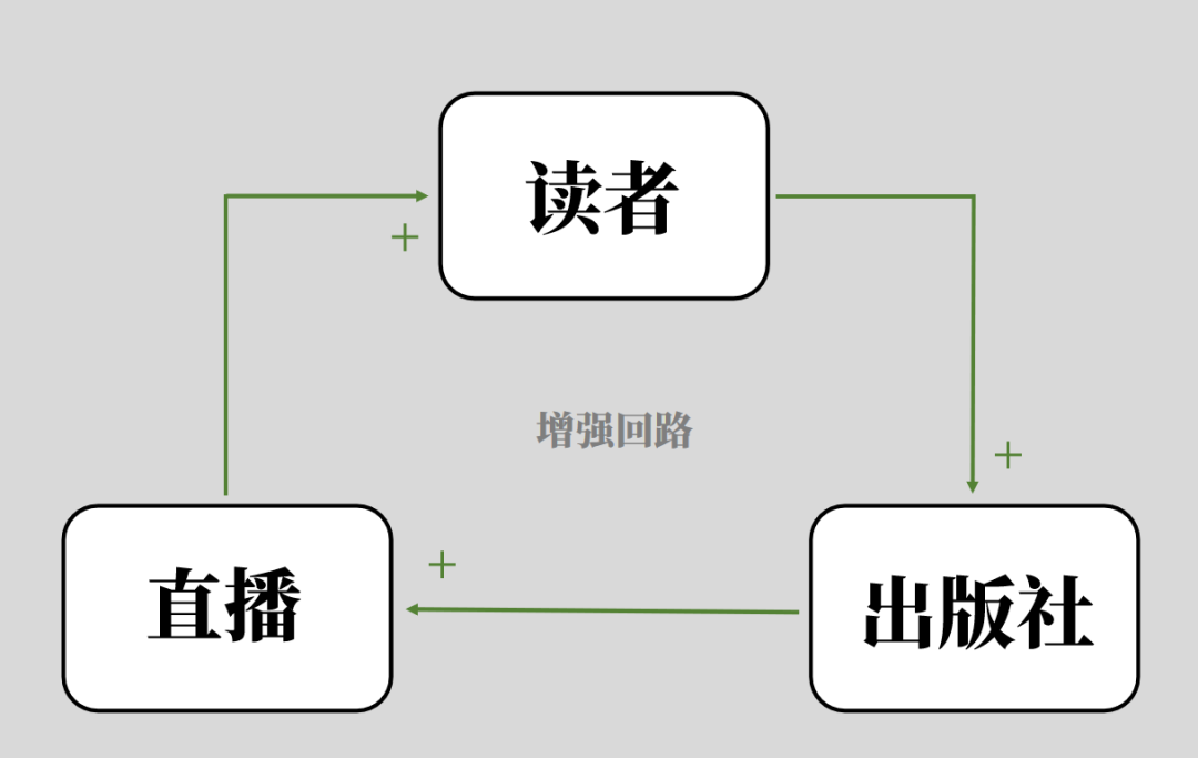 “读者-(+)>出版社-(+)>直播-(+)>读者”,这是直播业务的飞轮。