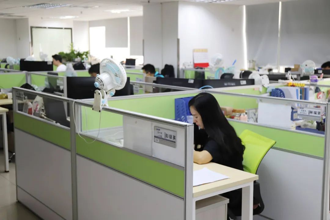 往里面走,见到的是布局严谨有序、整齐利落的办公区,和认真地投入到各自工作中的富哥港姐们。
